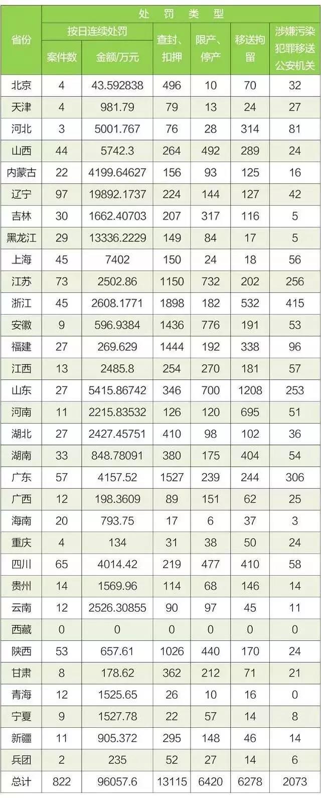 環(huán)保部公布:各省2017年1-9月環(huán)保法處罰明細