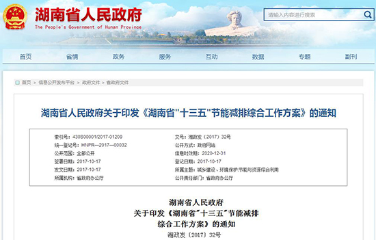 湖南省"十三五"節(jié)能減排綜合工作方案