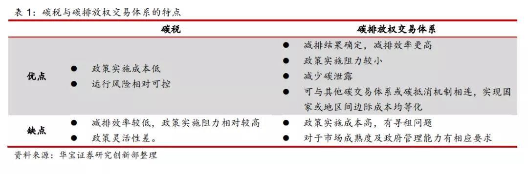 正是由于這種區(qū)別,兩種手段具有不同的特點(diǎn)。開征碳稅更適用于管控小微排放端,碳排放權(quán)交易體系則適用于管控排放量較大的企業(yè)或行業(yè)。這兩種政策是可以結(jié)合使用的。