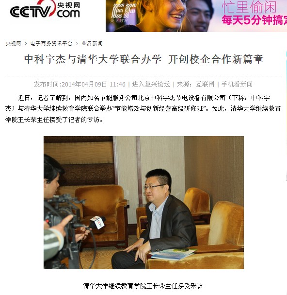 ????? 近日,記者了解到,國內知名節(jié)能服務公司北京中科宇杰節(jié)電設備有限公司(下稱:中科宇杰)與清華大學繼續(xù)教育學院聯(lián)合舉辦“節(jié)能增效與創(chuàng)新經(jīng)營高級研修班”。為此,清華大學繼續(xù)教育學院王長榮主任接受了記者的專訪。