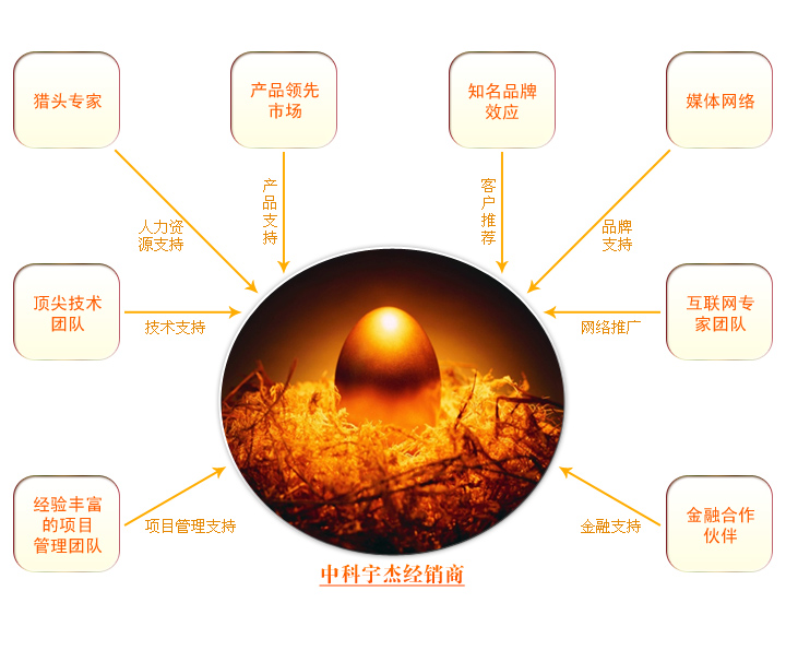 中科宇杰憑著多年的行業(yè)運作積累和500多個節(jié)能項目管理經(jīng)驗,結(jié)合節(jié)能行業(yè)的現(xiàn)狀,創(chuàng)造性地提出“節(jié)能商學(xué)院”式的渠道發(fā)展政策,綜合性地為全國有志于投身節(jié)能事業(yè)的企業(yè)、人士提供一個節(jié)能行業(yè)企業(yè)的“孵化器”平臺。此平臺不但在渠道的政策方面,給予經(jīng)銷商靈活的操作方式,充分發(fā)揮不同類型經(jīng)銷商的優(yōu)勢和長處,還為經(jīng)銷商提供行業(yè)資訊、技術(shù)培訓(xùn)、商務(wù)操作、投融資、人力資源、客戶資源、互聯(lián)網(wǎng)支持等方面給予強有力的支持,讓你的投資不但有經(jīng)濟(jì)收益,還能在企業(yè)經(jīng)營方面得到諸多的收益。中科宇杰不但自己做大做強,也幫助我們的合作者成長,共同成為節(jié)能行業(yè)的翹楚。