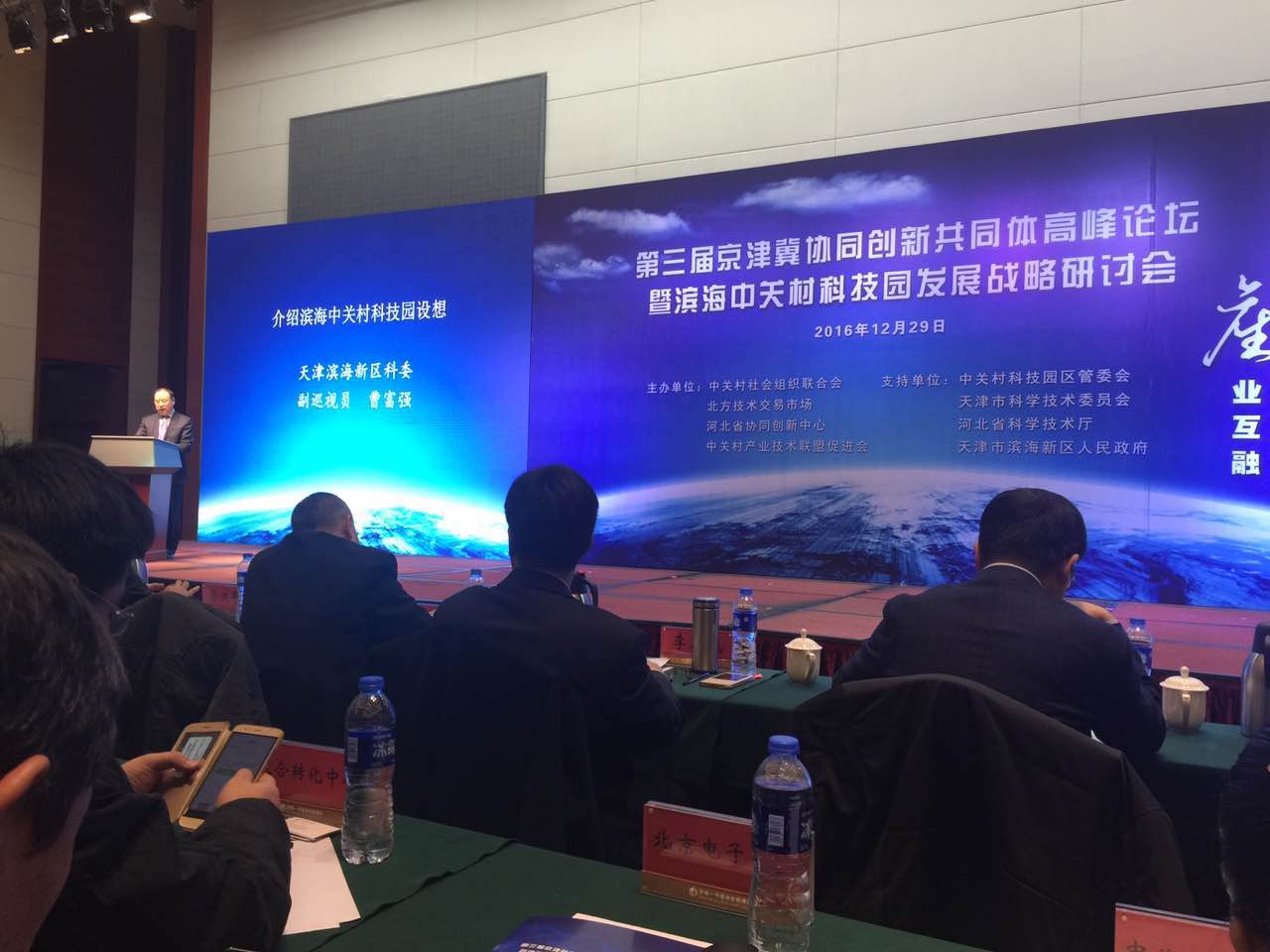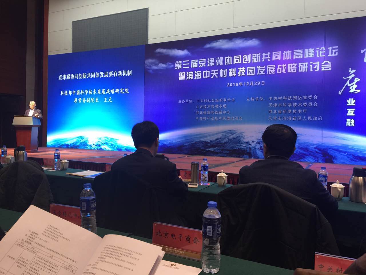 本次會議盛況空前,座無虛席,聚集了眾多天津市領(lǐng)導親臨參與,由科技部戰(zhàn)略研究院原常委副院長王元、天津市科委主任陸文龍、濱海新區(qū)區(qū)長張勇、河北省科技廳副廳長張永強等發(fā)表了主題演講,同時由中關(guān)村管委會副主任宣鴻解讀了《中關(guān)村國家自主示范區(qū)京津冀協(xié)同創(chuàng)新共同體建設行動計劃(2016—2018)》,并主持《發(fā)揮中關(guān)村節(jié)能環(huán)保技術(shù)優(yōu)勢推進京津冀傳統(tǒng)產(chǎn)業(yè)改造升級實施方案》發(fā)布儀式。