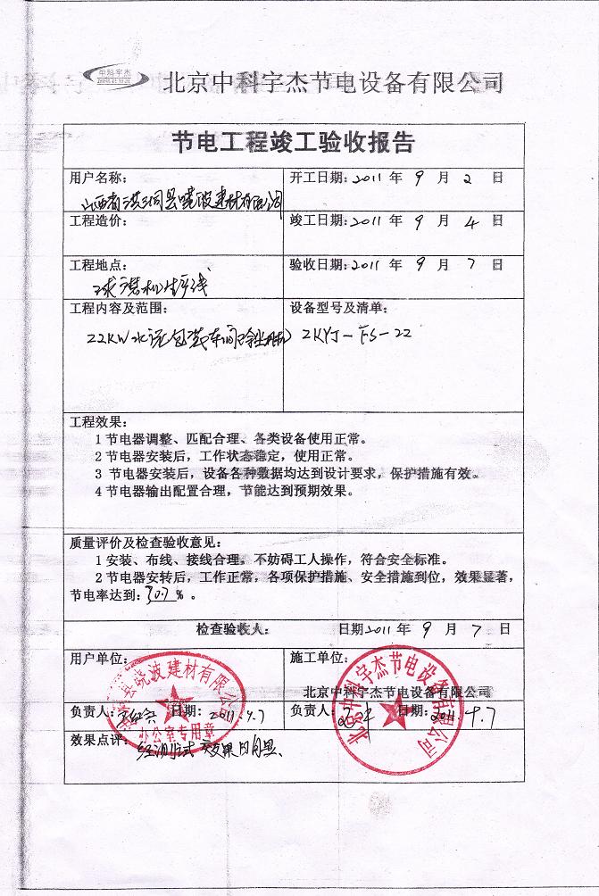 安裝調(diào)試驗(yàn)收,節(jié)能效率達(dá)到30.7%,投資回報(bào)期一年半,按質(zhì)保十年計(jì)算,此項(xiàng)節(jié)能工程能為山西洪洞縣曉波建材有限公司帶來(lái)四百多萬(wàn)人民幣的直接經(jīng)濟(jì)效益。