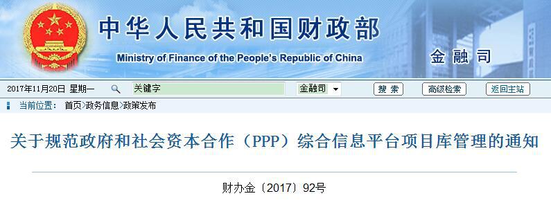 投資額達17.8萬億元的PPP項目庫管理進一步從嚴規范。11月16日,財政 部公布《關于規范政府和社會資本合作(PPP)綜合信息平臺項目庫管理的通知》(以下簡稱《通知》)。